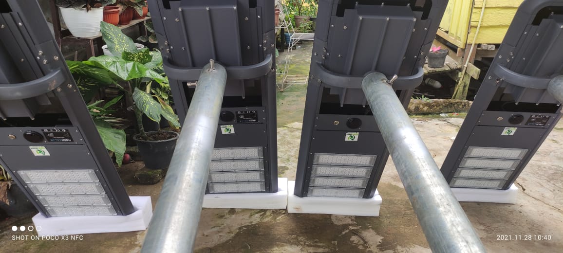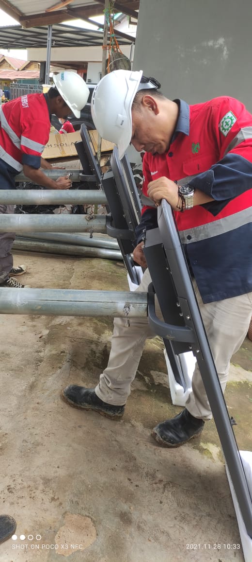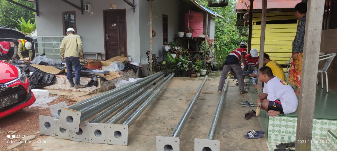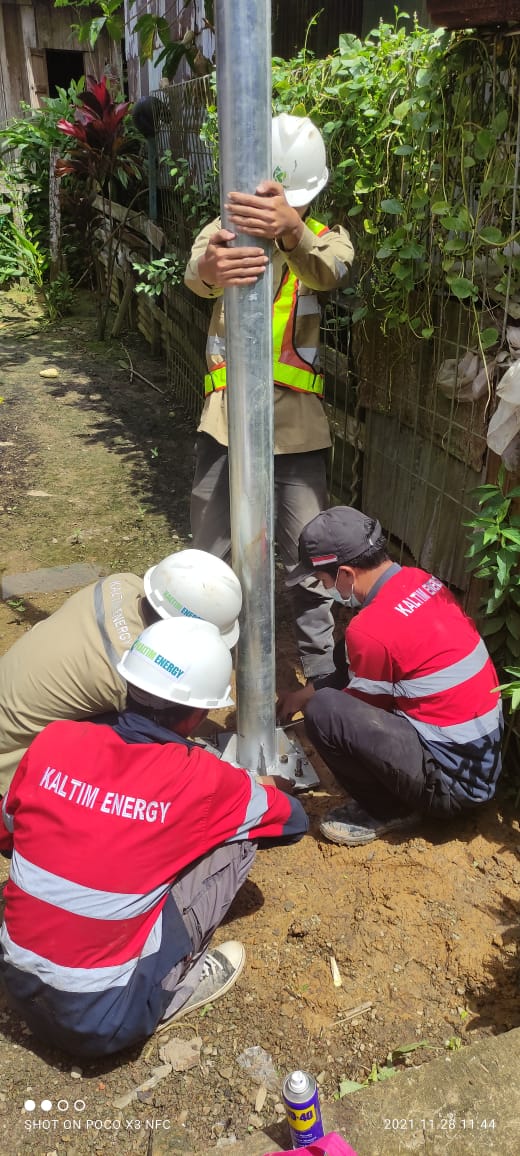 Instalasi Pemasangan PJUTS pada jalan di daerah Sangatta