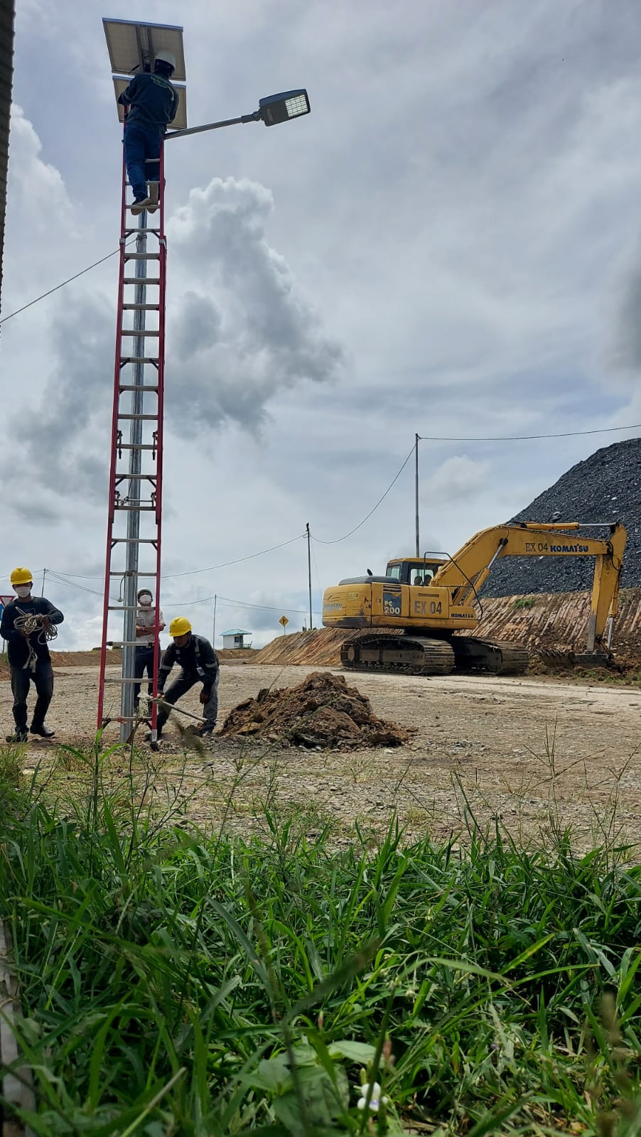 Pemasangan Lampu di Jalan Hauling menggunakan Lampu model Two In One