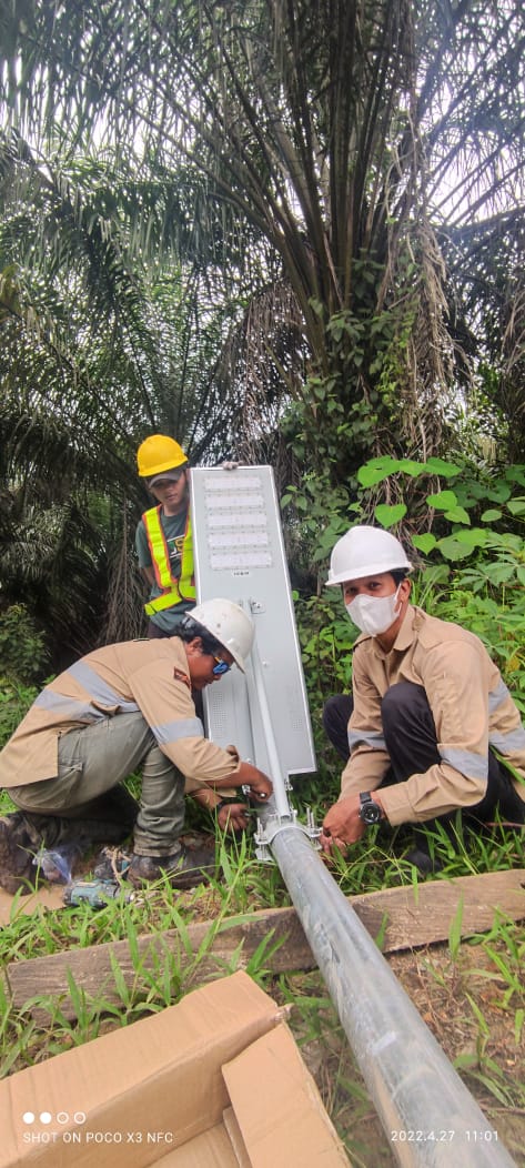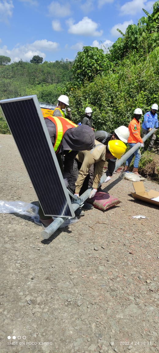 Pemasangan Lampu Jalan Tenaga Surya di jalan Houling di daerah Tenggarong, Kutai Kartanegara