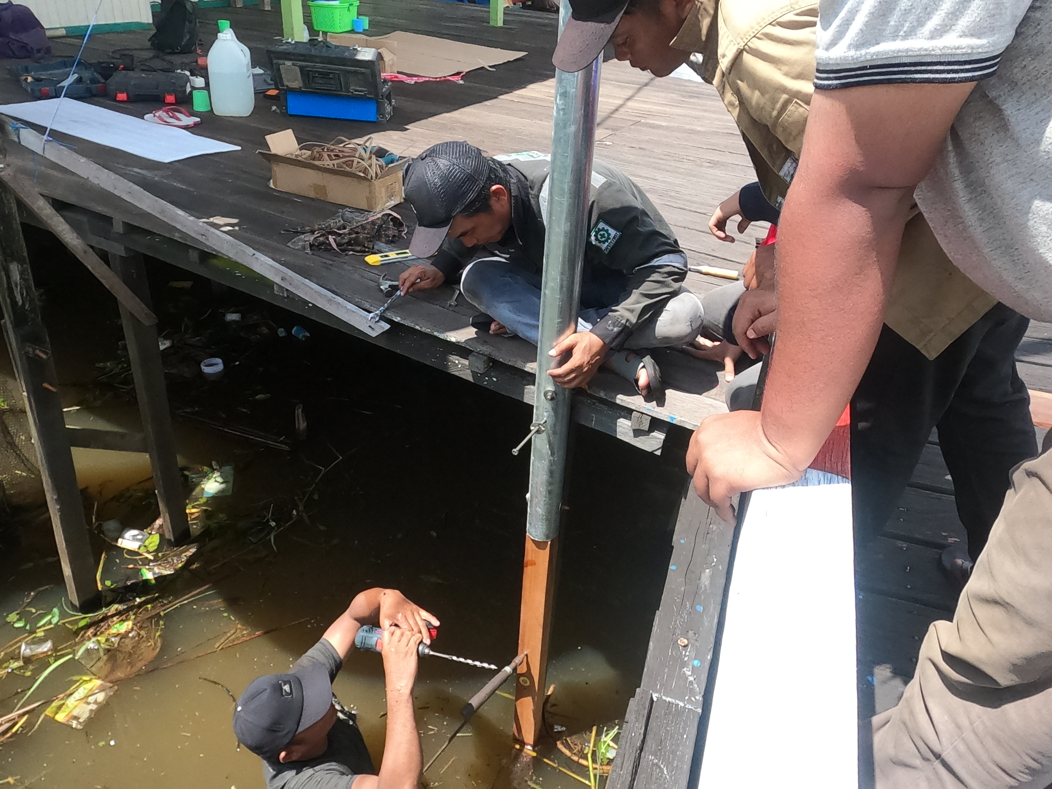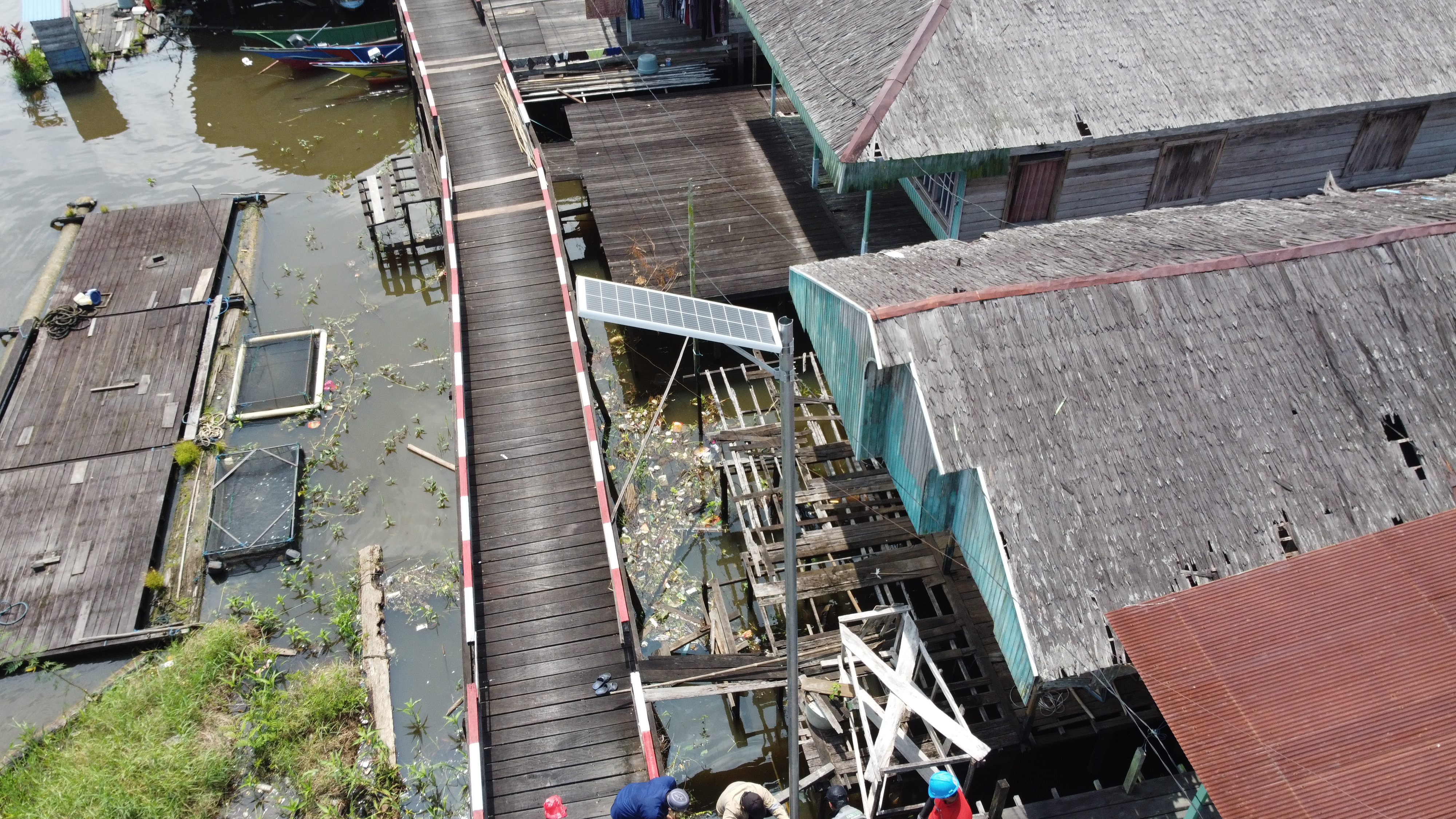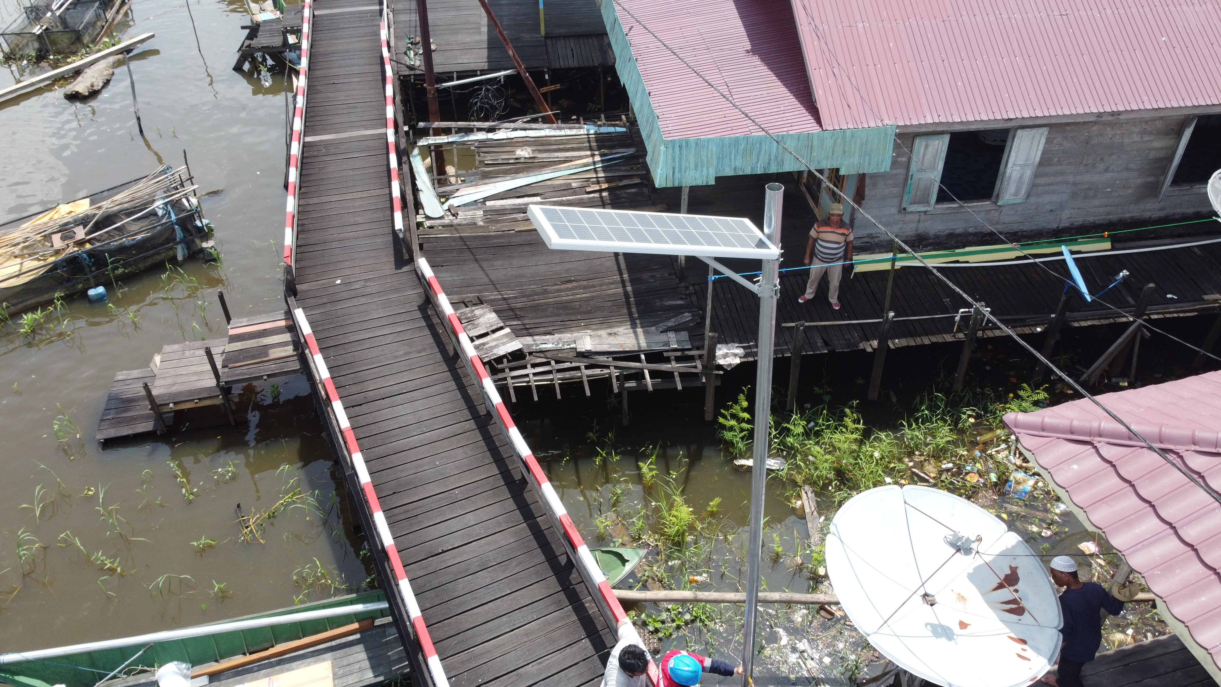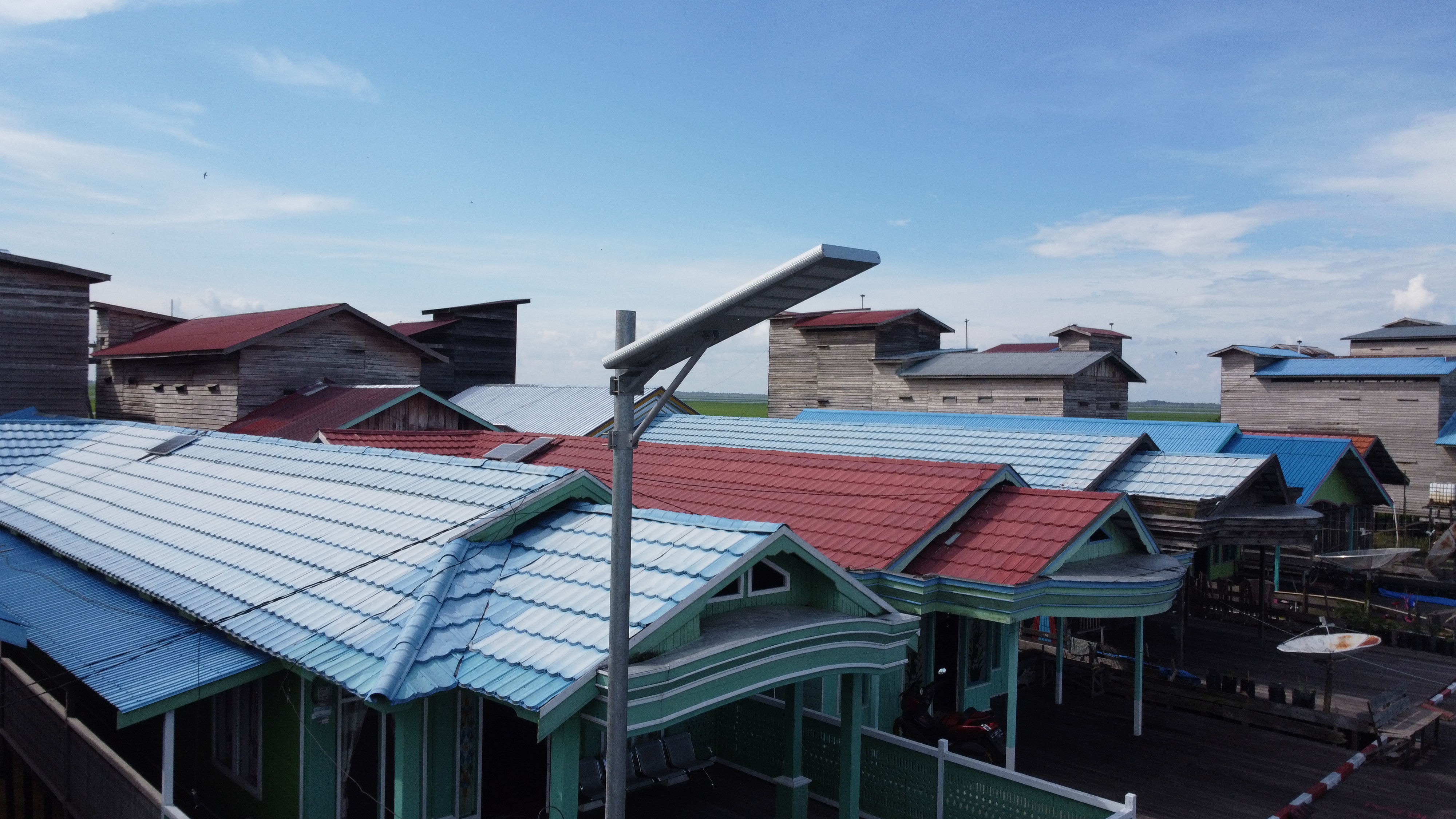 Pemasangan 8 Unit lampu jalan tenaga surya untuk penerangan jalan di Desa Muara Aloh.