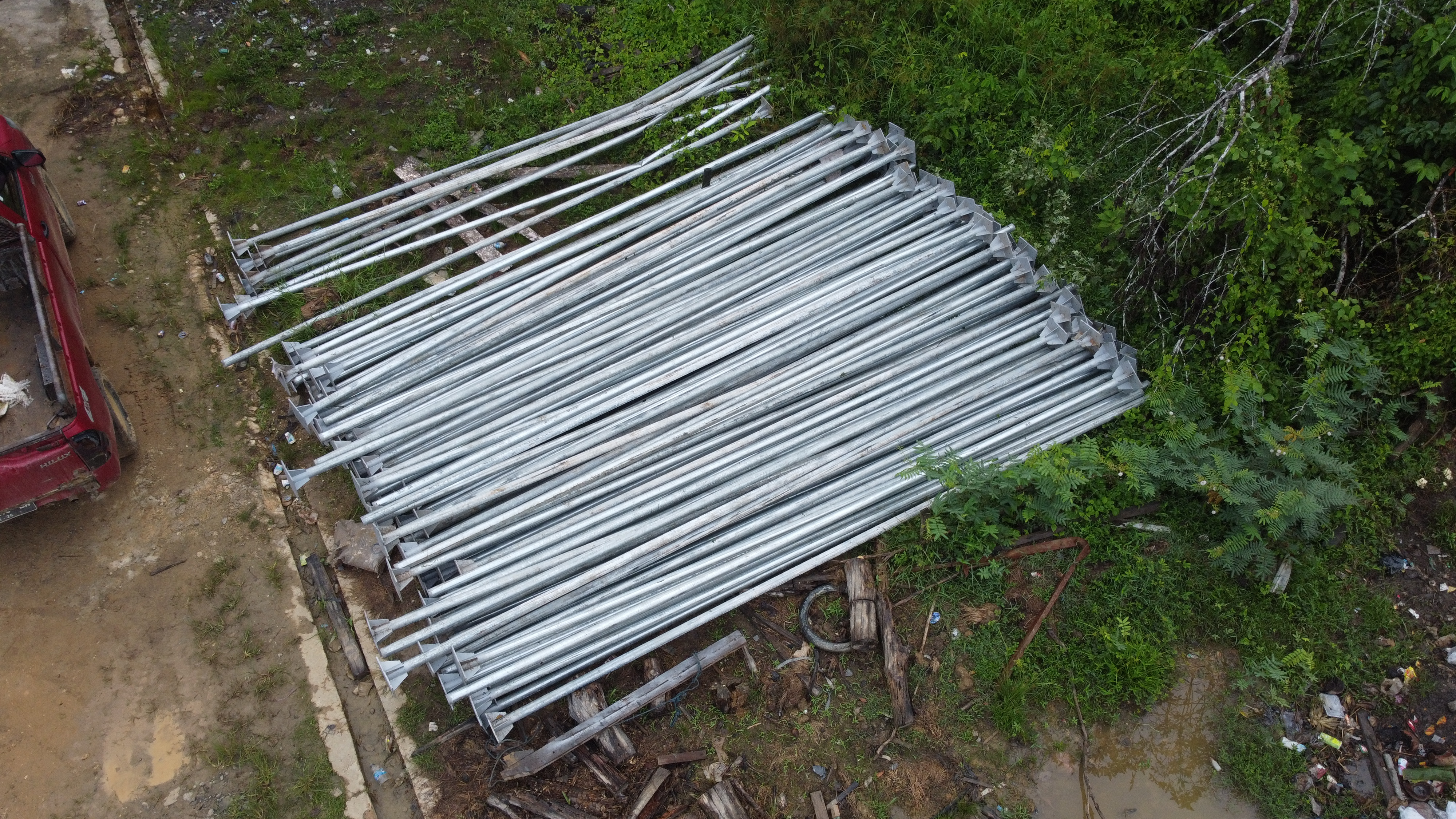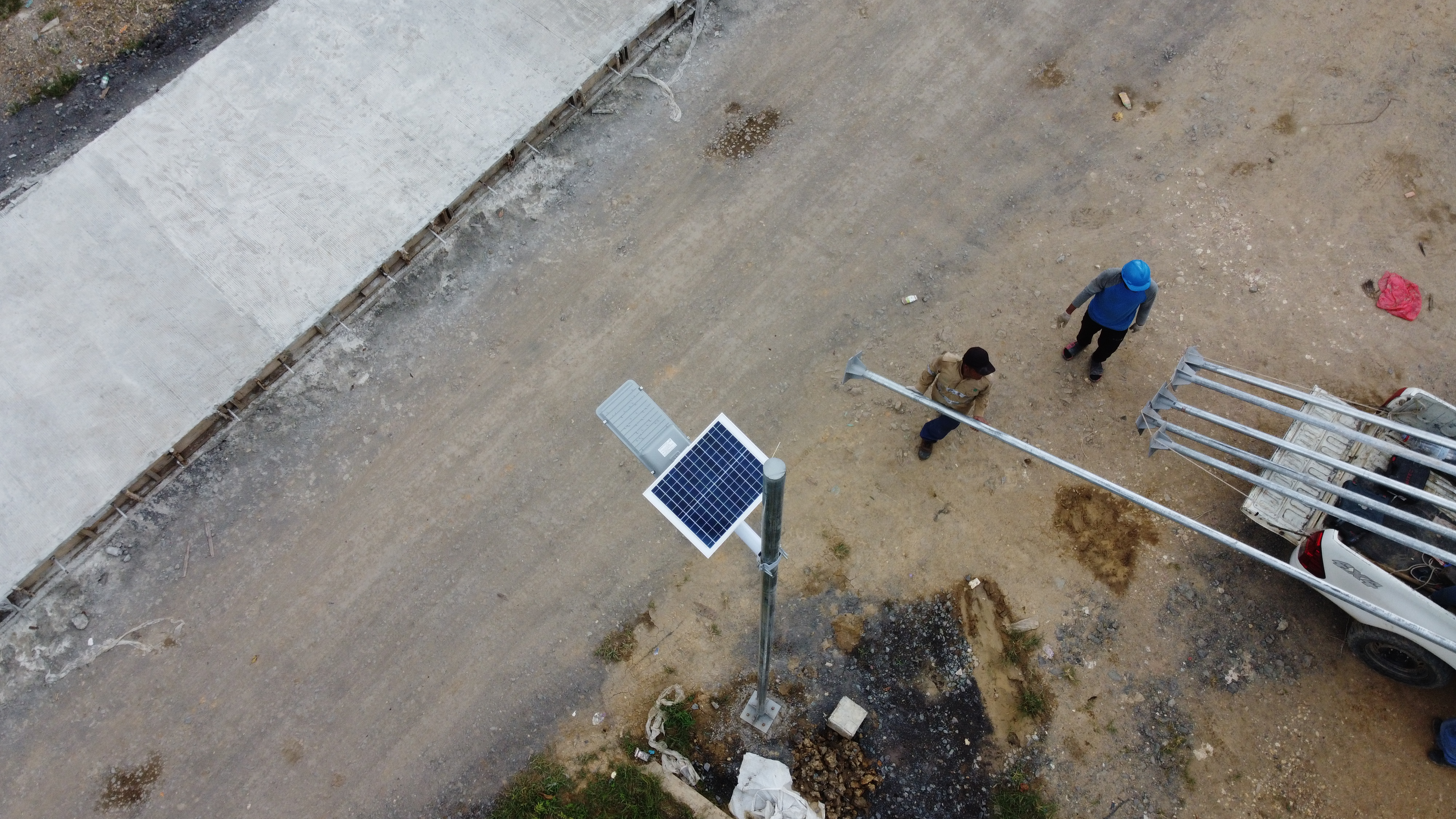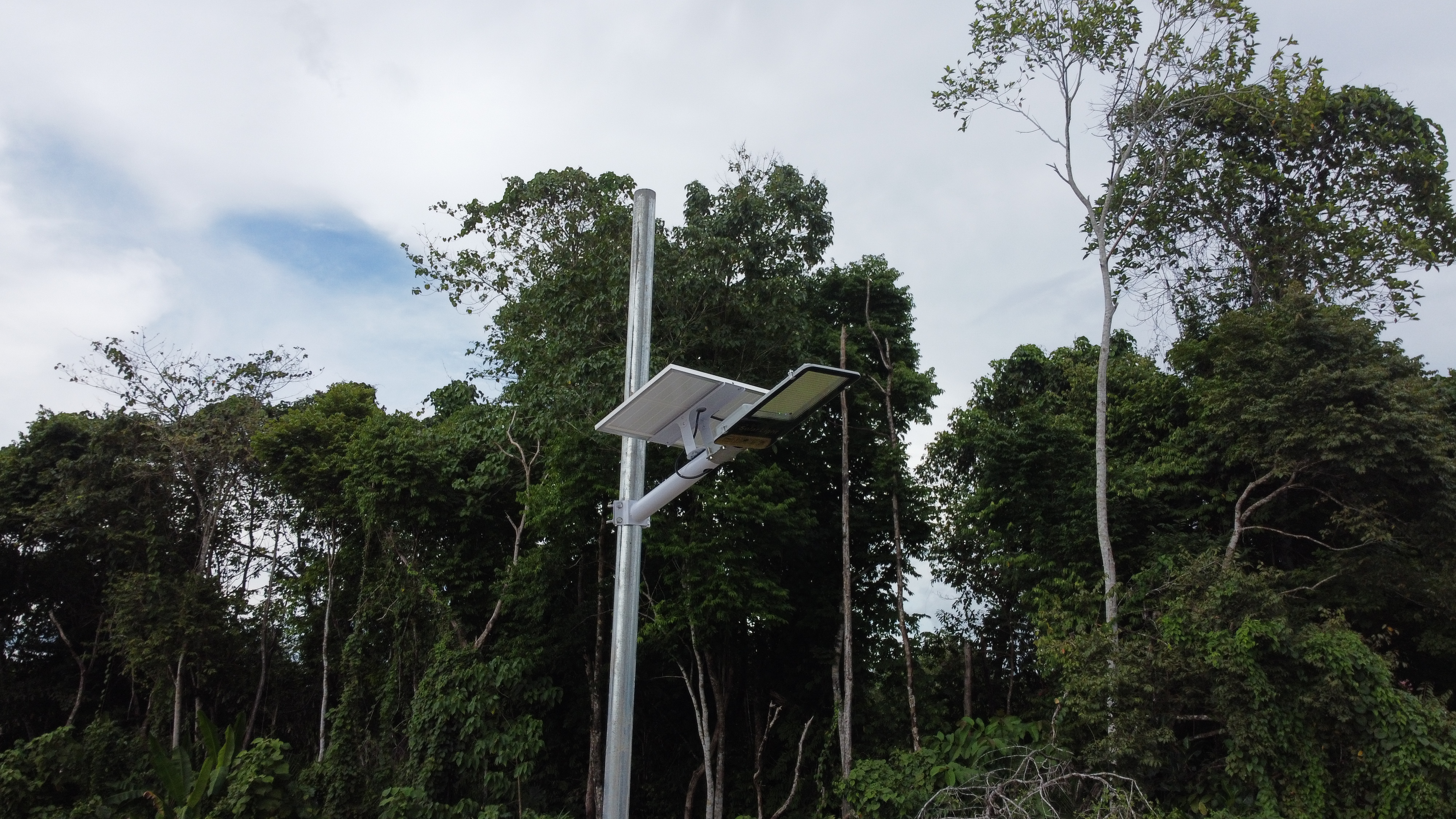 Pemasnagan lampu jalan tenaga surya two in one untuk penerangan jalan desa Muaran Pantun, Kutai Timur